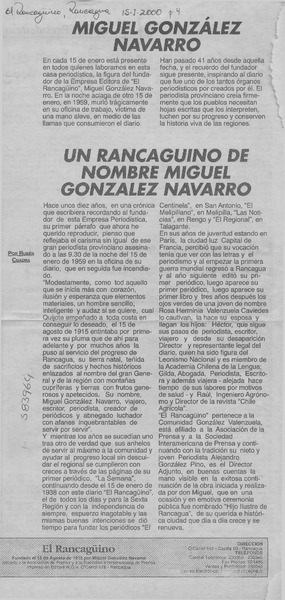 Evocando al periodista Miguel González Navarro [artículo] José Arraño Acevedo.