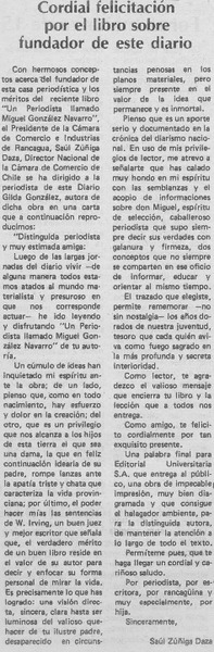 Cordial felicitación por el libro sobre fundador de este diario [artículo] Saúl Zúñiga Daza.