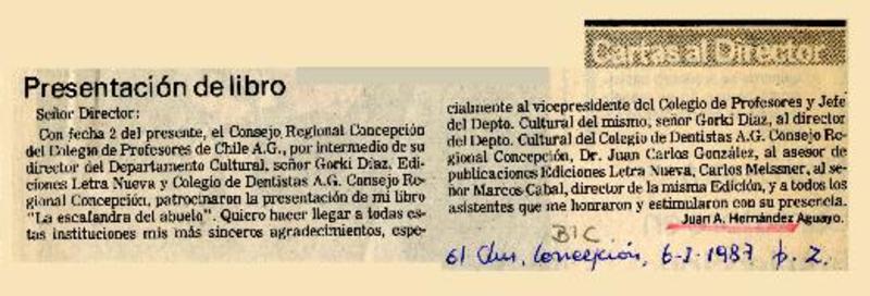 Presentación de libro [artículo] Juan A. Hernández Aguayo.