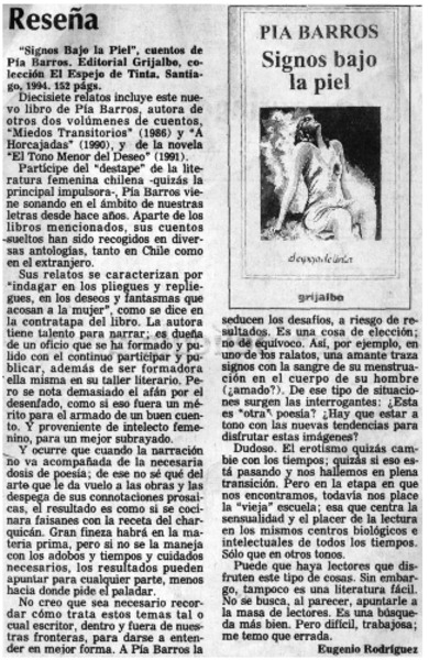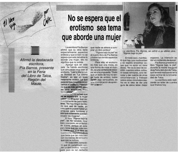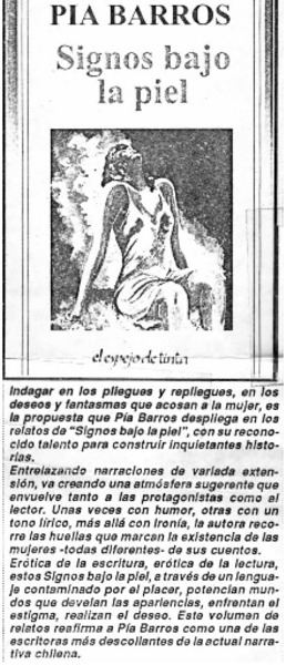 "Signos bajo la piel" de pía Barros, huellas de mujer [artículo].