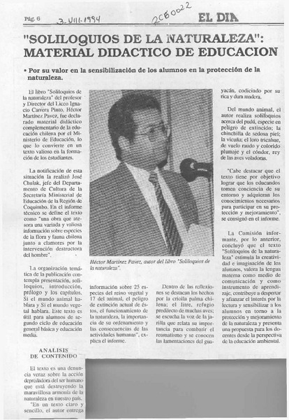 Libro "La naturaleza en 500 reflexiones" [artículo] Héctor Martínez Pavéz.