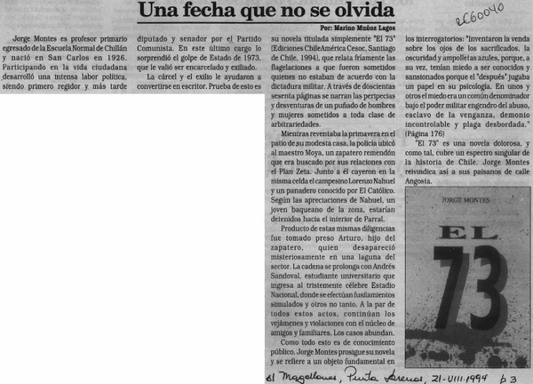 La narrativa vivencial de Jorge Montes M. [artículo] Pedro Mardones Barrientos.