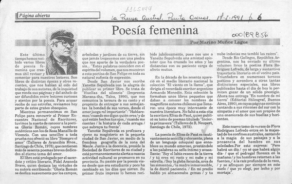 Poesía femenina [artículo] Marino Muñoz lagos.