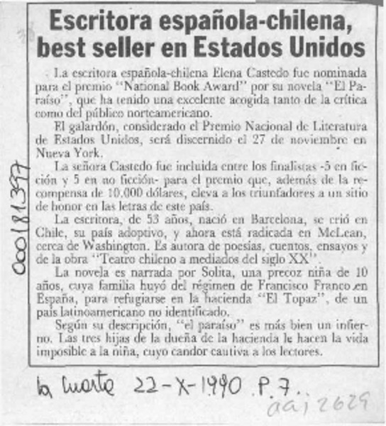 Escritora española-chilena, best seller en Estados Unidos [artículo].