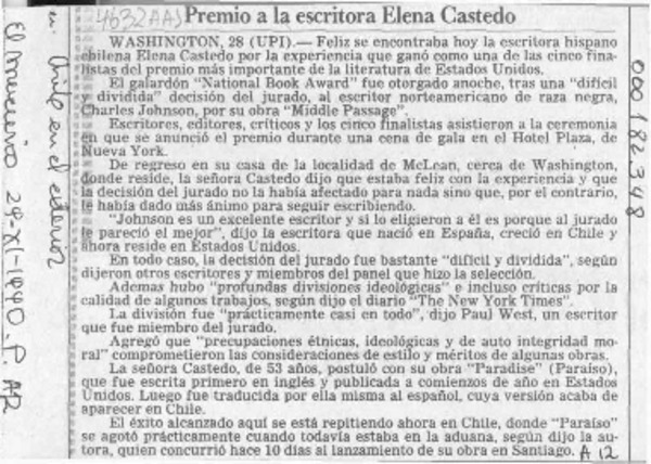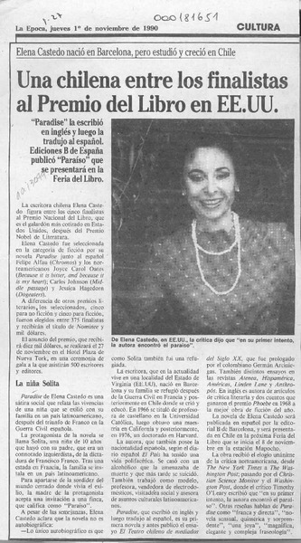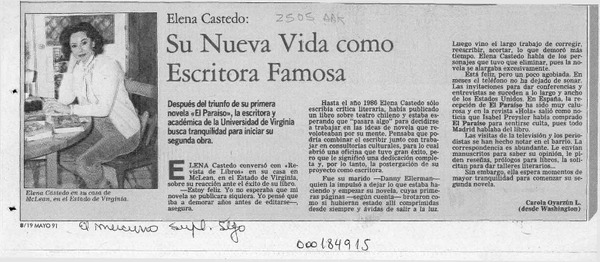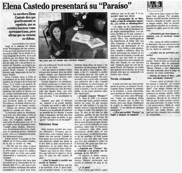 Elena Castedo: una chilena que triunfa en las letras y como ejecutiva : [Entrevista] [artículo] S. Larraín.