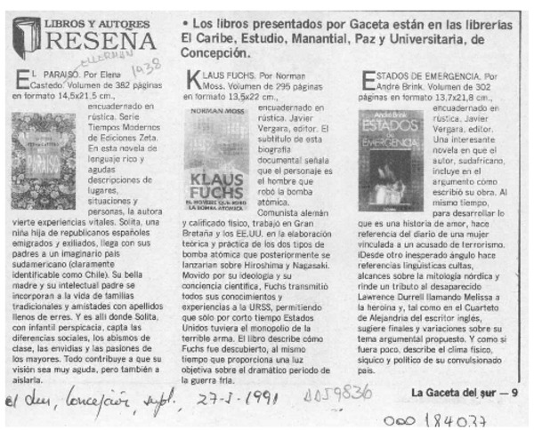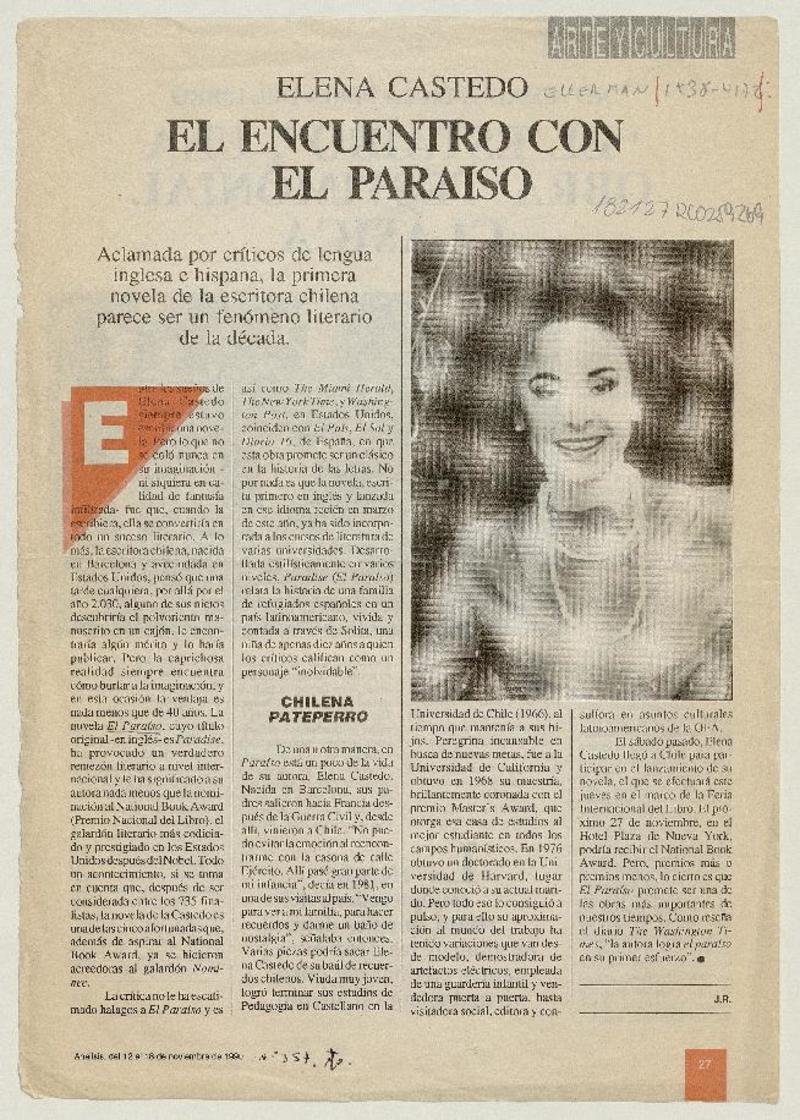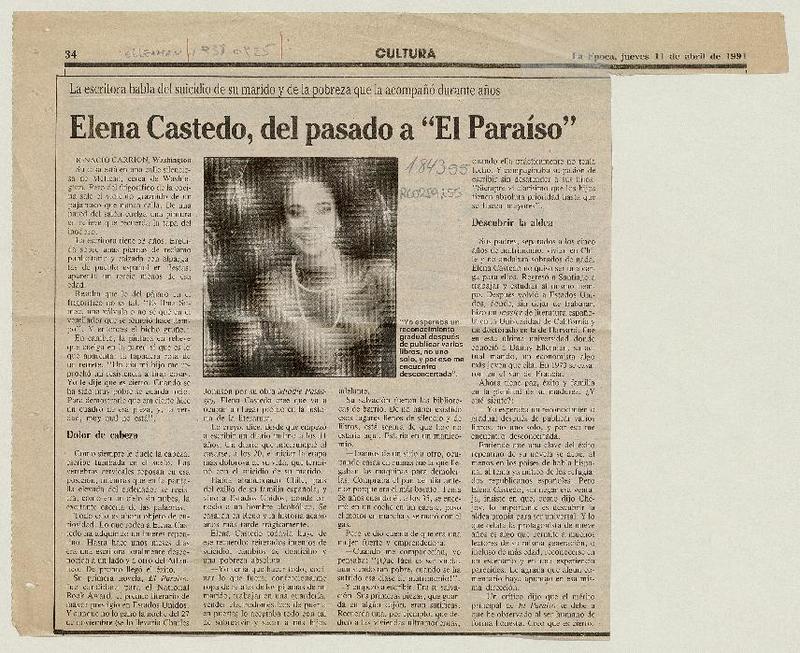 Elena Castedo, del pasado a "El Paraíso" [artículo] Ignacio Carrión.