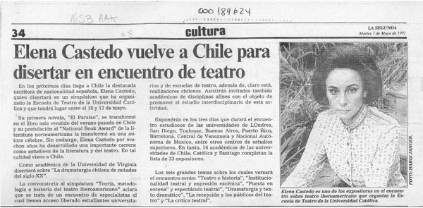 Elena Castedo vuelve a Chile para disertar en encuentro de teatro [artículo].