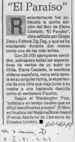 Autores chilenos - Castedo-Ellerman, Elena - Paraíso