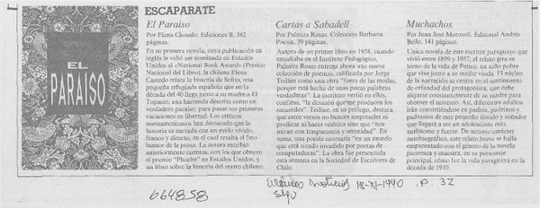 Autoras chilenas - Autores chilenos - AUTORES PARAGUAYOS - Castedo-Ellerman, Elena - Rosas, Palmira - Cartas a sabadell - Paraíso - Morosoli, Juan José - Muchachos