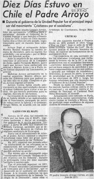 Diez días estuvo en Chile el padre Arroyo. [artículo]
