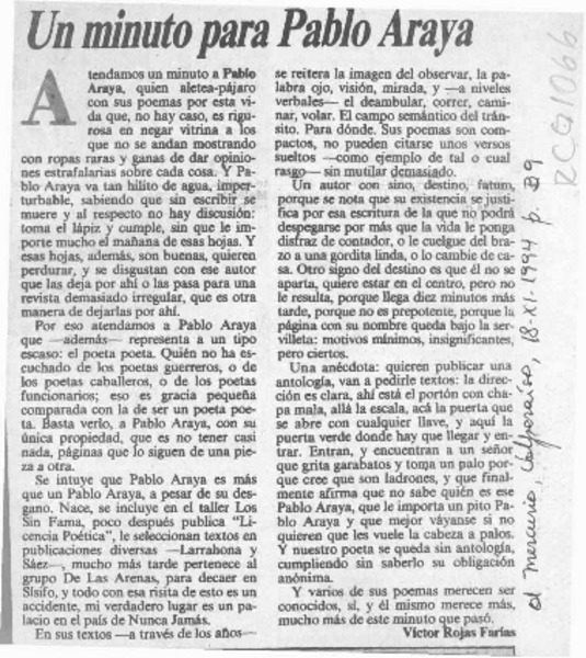 Un minuto para Pablo Araya [artículo] Víctor Rojas Farías.