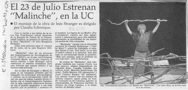 El 23 de julio estrenan "Malinche", en la UC [artículo].