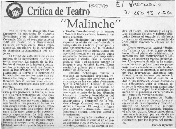 "Malinche", buscando nuevos caminos [artículo] Yolanda Montecinos.