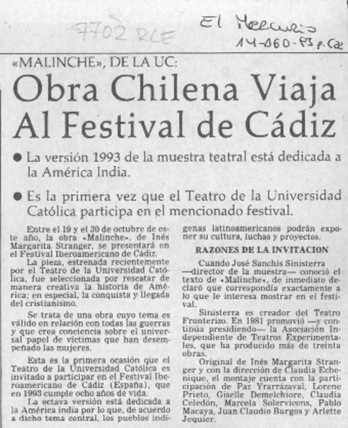 Obra chilena viaja al Festival de Cádiz [artículo].