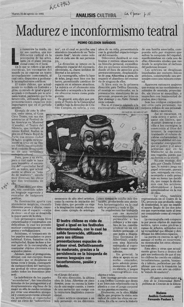 Madurez e inconformismo teatral [artículo] Pedro Celedón Bañados.