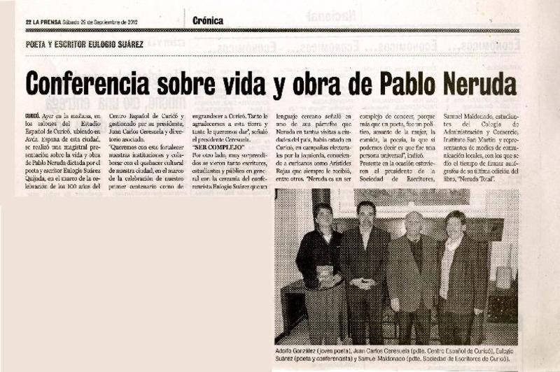 Conferencia sobre vida y obra de Pablo Neruda. [artículo]