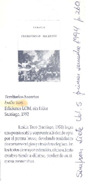 Moure Rojas, Edmundo - Galende, Federico - Entresiglos y quimeras - Toro, Emilia - Territorio secreto