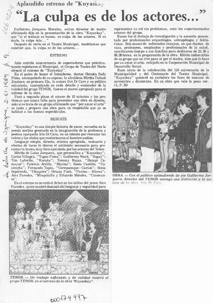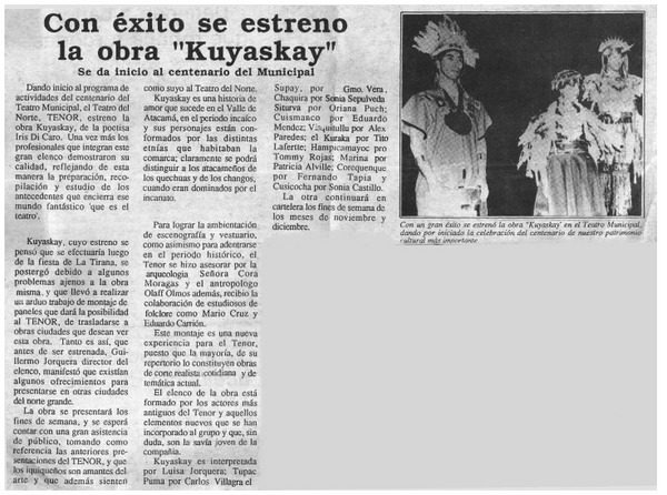 Con éxito se estrenó la obra "Kuyaskay" [artículo].