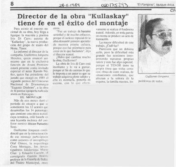 Director de la obra "Kullaskay" tiene fe en el éxito del montaje [artículo].