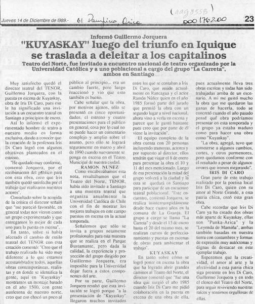 "Kuyaskay" vuelve al Teatro Municipal [artículo].