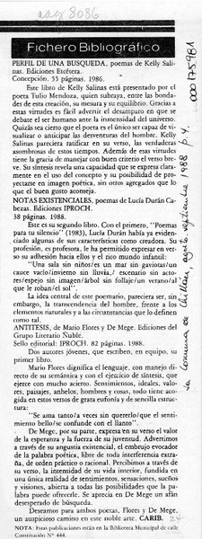 SALINAS, KELLY - Flores F., Mario - DURAN CABEZAS, LUCIA - NOTAS EXISTENCIALES - Antítesis - MEGE, JORGE - ANTITESIS - PERFIL DE UNA BUSQUEDA