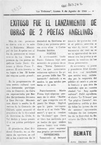 Exitoso fue el lanzamiento de obras de 2 poetas angelinos [artículo].