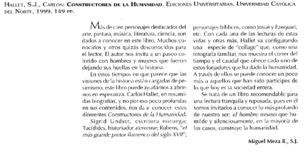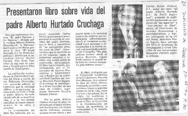 Lanzarán nuevo libro del padre Hallet [artículo].