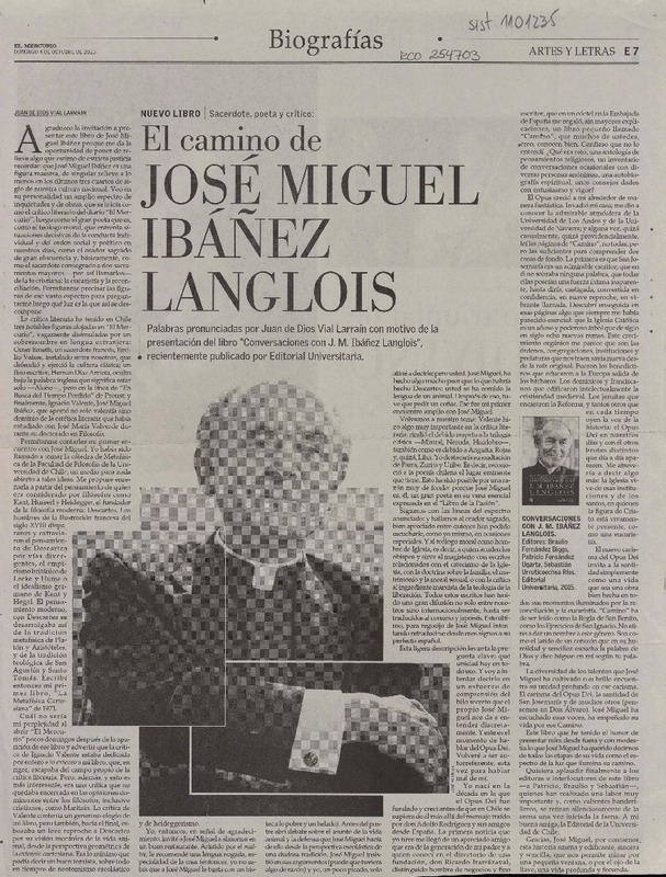 El camino de José Miguel Ibáñez Langlois [artículo] Juan de Dios Vial Larraín.