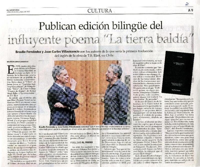 Publican edición bilingue del influyente poema La tierra baldía" [artículo] : Maureen Lennon.