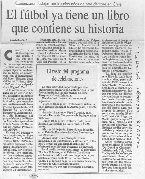 El fútbol ya tiene un libro que contiene su historia [artículo] Marcelo González C.