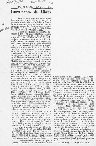 La novela "Casa grande" en la historia social de Chile, 1900 [artículo] María Angélica Muñoz Gomá.