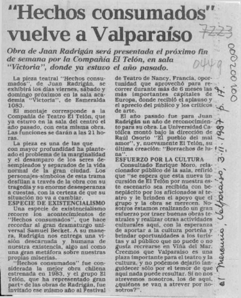 "Hechos consumados" vuelve a Valparaíso [artículo].