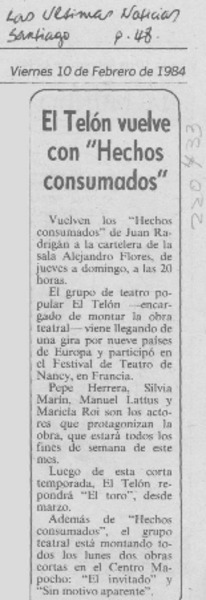 El Telón vuelve con "Hechos consumados" [artículo].