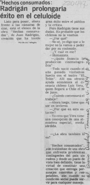 Radrigán prolongaría éxito en el celuloide [artículo].