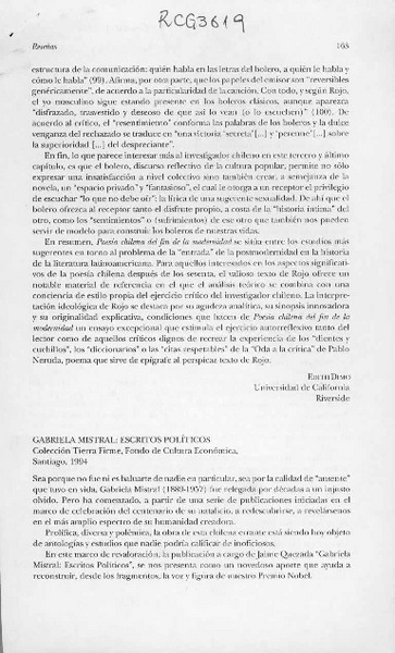 Gabriela Mistral, escritos políticos [artículo] Mario Aliaga.