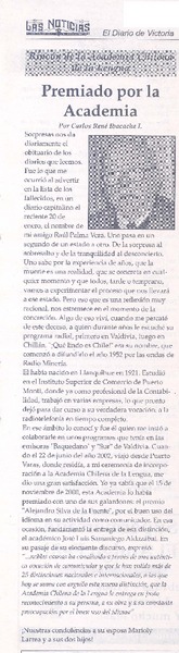 Premiado por la Academia [artículo]Carlos René Ibacache.