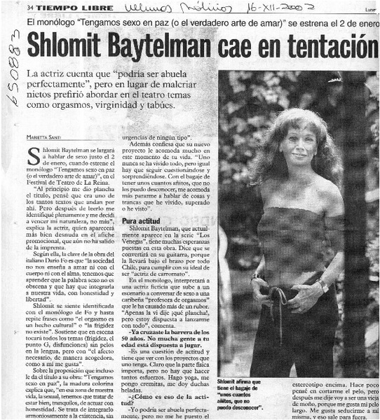 Shlomit Baytelman cae en tentación [artículo] Marietta Santí