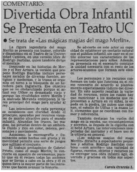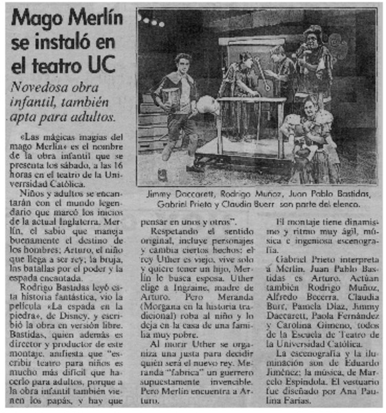 Mágicas jornadas con Merlín en el teatro UC [artículo].