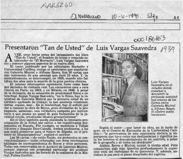 Presentaron "Tan de usted" de Luis Vargas Saavedra [artículo].