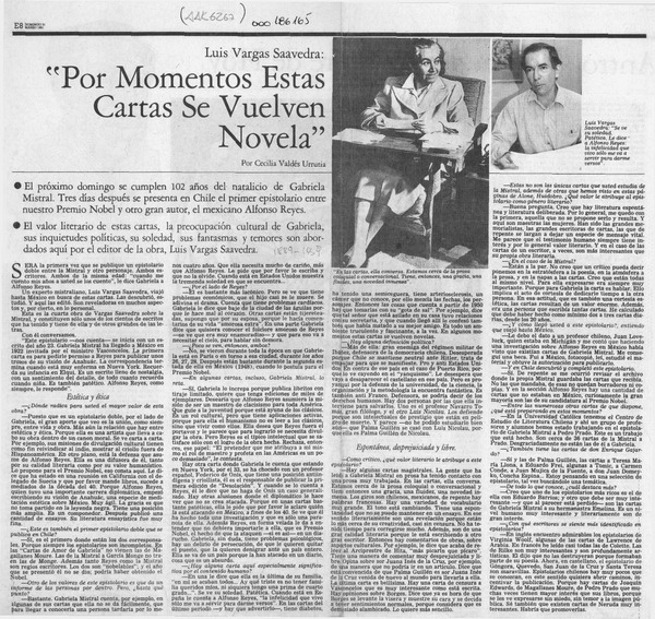 "Por momentos estas cartas se vuelven novela" [artículo] Cecilia Valdés Urrutia.