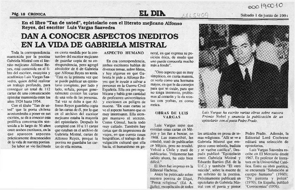 Dan a conocer aspectos inéditos en la vida de Gabriela Mistral [artículo].