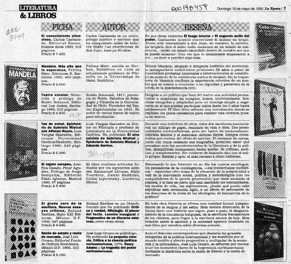 Autores chilenos - MARTINEZ, TOMAS ELOY - VARGAS SAAVEDRA, LUIS - Autores argentinos - NOVELA DE PERON, LA - TAN DE USTED, EPISTOLARIO DE GABRIELA MISTRAL CON ALFONSO REYES