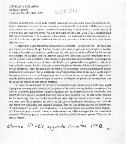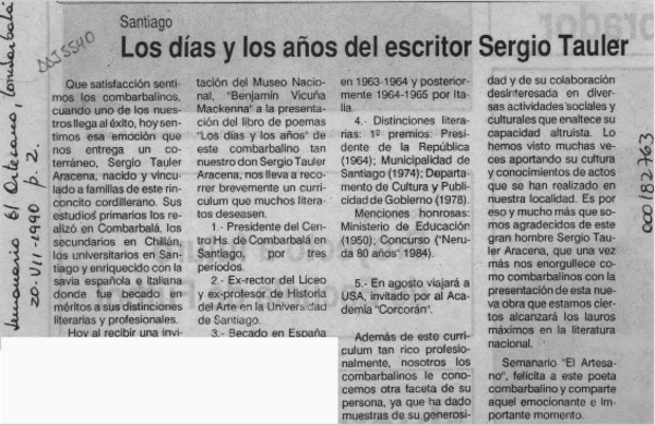 Los Días y los años del escritor Sergio Tauler [artículo].