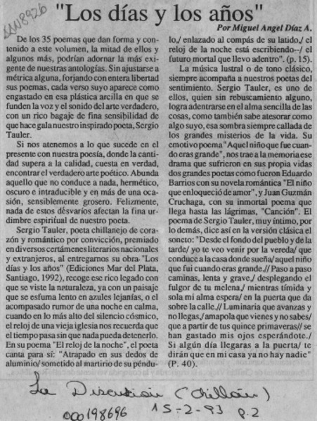 "Los días y los años" [artículo] Miguel Angel Díaz A.