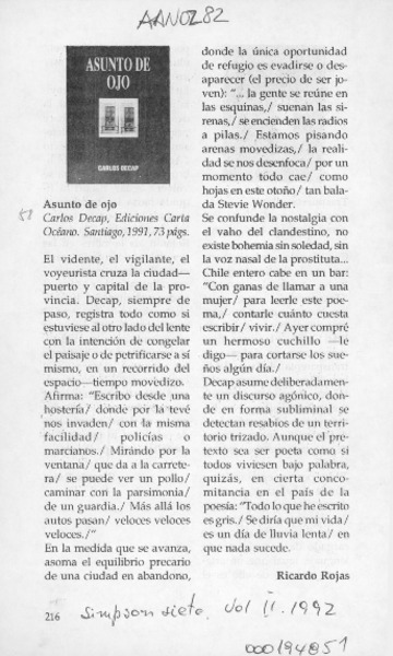 Autores chilenos - Decap, Carlos - Asunto de ojo