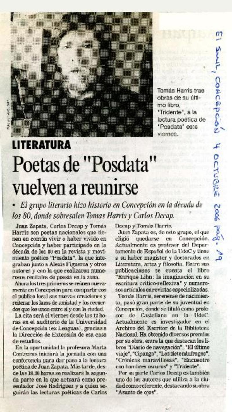 Poetas de "Postdata" vuelven a reunirse [artículo].