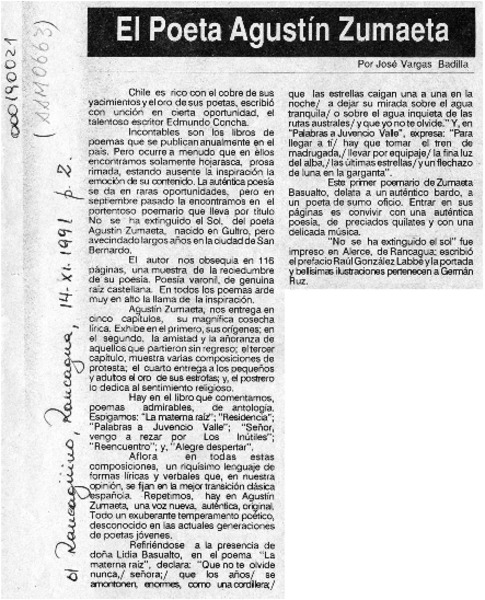 El poeta Agustín Zumaeta [artículo] José Vargas Badilla.