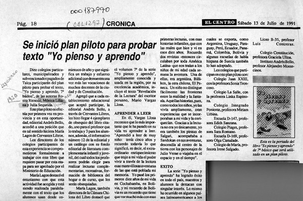 Se inició plan piloto para probar texto "Yo pienso y aprendo" [artículo].