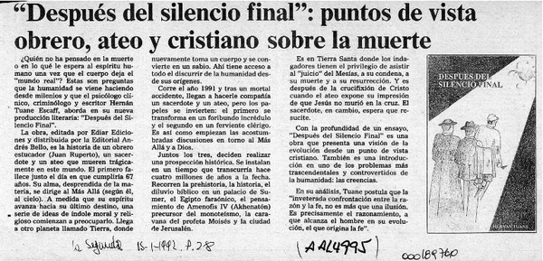 "Después del silencio final", puntos de vista obrero, ateo y cristiano sobre la muerte [artículo]