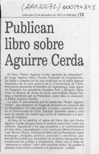 Editan antología sobre Pedro Aguirre Cerda [artículo]